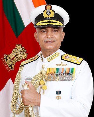 Admiral Radhakrishnan Hari Kumar PVSM, AVSM, VSM, ADC (born 12 April 1962) is the 25th and current Chief of the Naval Staff (CNS) of the Indian Navy. Previously, he served as the Flag Officer Commanding-in-Chief, Western Naval Command.[3] In his prior appointments, he served as the Vice Chief of Defence Staff, Chief of Personnel, the Flag Officer Commanding Western Fleet, and as the Chief of the Staff of the Western Naval Command. He was the Commandant of the Naval War College, Goa and served as a naval advisor to the government of Seychelles.[4][5][6] He is an alumnus of National Defence Academy and holds an M.Phil. in Defence and Strategic Studies from the University of Mumbai. On 9 November 2021, the Government of India appointed Kumar as the next Chief of Naval Staff. He took office after superannuation of Admiral Karambir Singh on 30 November 2021.[1]